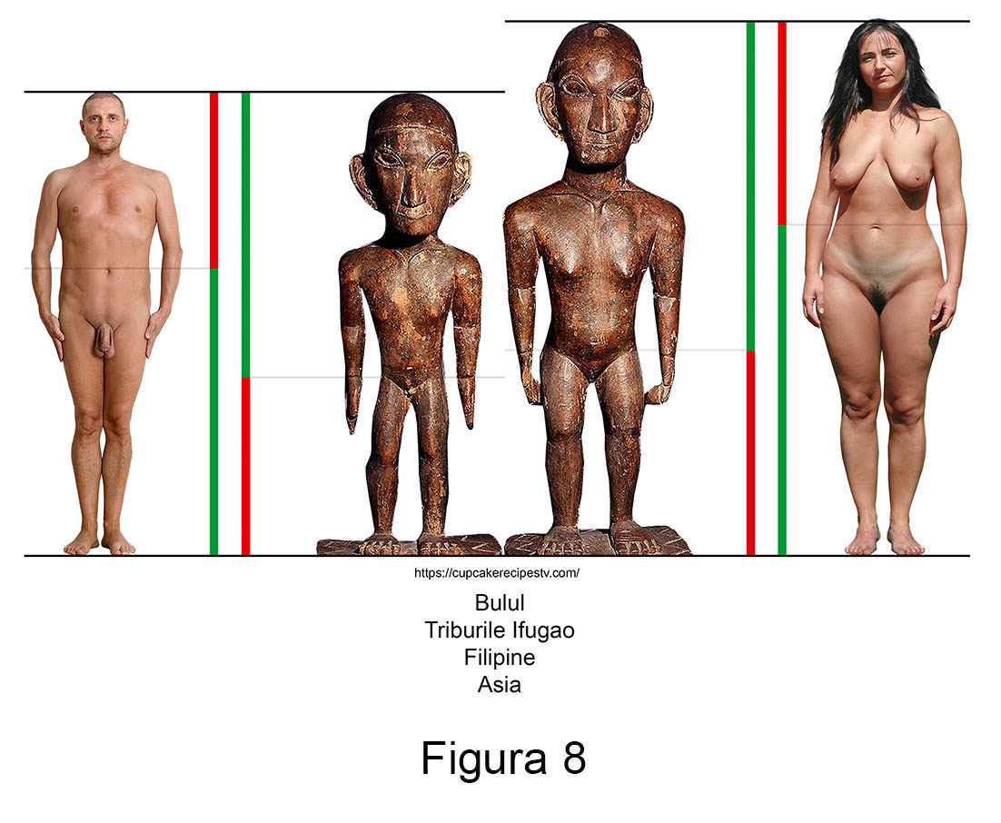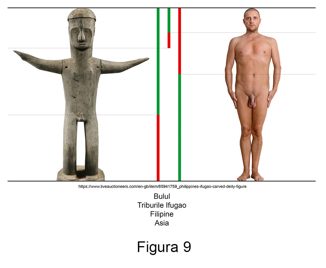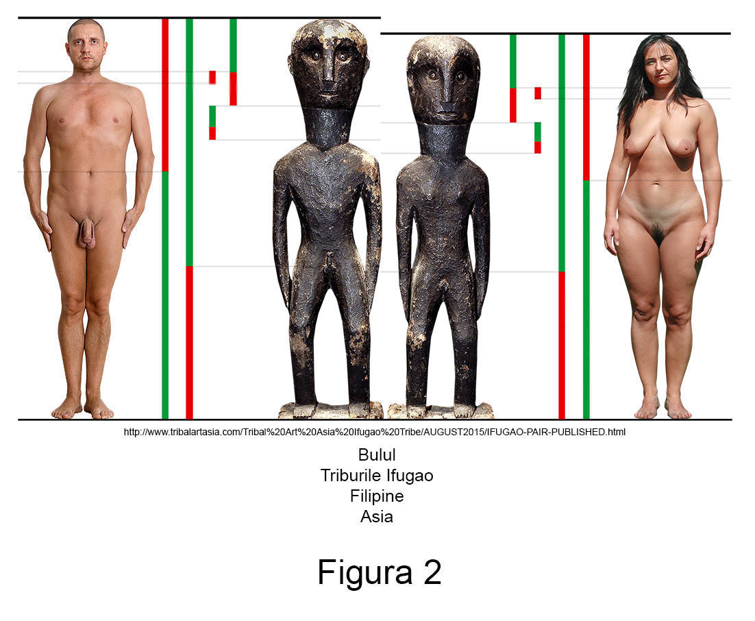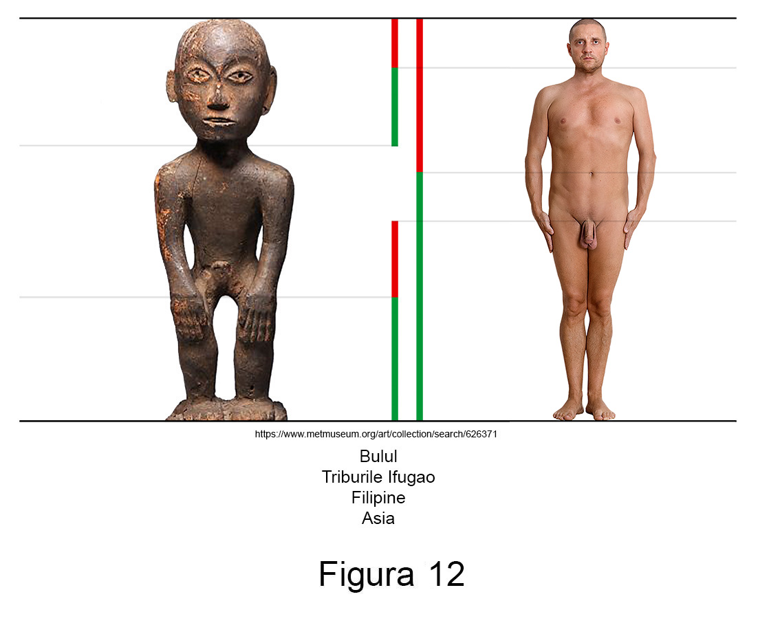 Sculptura primitivă contemporană conține în mod recurent abateri de aur. Larg răspândite în nordul arhipelagului filipinez, triburile Ifugao venerează de secole zeități ale orezului numite Bulul. Așa cum se poate observa în măsurătorile alăturate, figurinele din lemn ale acestor idoli reprezintă exemple relevante pentru ambele sexe.
